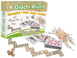 4 Giochi Riuniti In Legno. Shanghai, Dadi, Carte, Domino