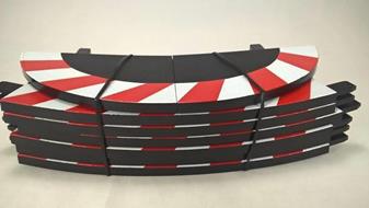 Cordoli esterni per curve paraboliche raggio 1 da 30 gradi. Confezione da 6 pezzi, con 2 cordoli terminali compresi. Caratteristiche degli Elementi di Pista Carrera - Sistema modulare di pista unico al mondo, elementi di pista in scala 1:24, larghi ben 19.8 cm, per macchine sia in scala 1:32 che 1:24 - Costruisci il tracciato di pista che preferisci grazie alle infinite possibilità di combinazione dei vari binari - La rigidità della plastica utilizzata nella realizzazione degli elementi di pista ed i ganci di fissaggio tra i vari binari assicurano una guida divertente e pulita su una pista particolarmente piatta - Ottima conducibilità della corrente grazie alle bandelle in acciaio Nirosta di alta qualità ed al loro sistema di connessione flessibile - Pista espandibile da 2 a 4, 6 ed 8 corsie - Facilmente convertibile al sistema digitale in qualunque momento ,