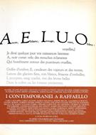 <p>Periodico trimestrale - Direttore Bruno Cor&agrave; - Anno VIII. N. 19, gennaio 1987. Testi di Daniel Arasse, Rosario Assunto, Eugenio Battisti, Cesare Brandi, Andr&egrave; Chastel, Eugenio Garin, Ernst Gombrich, Amine Haase, Corrado Maltese, Lionello Luppi. Illustrazioni a colori&nbsp; e in bianco e nero (opere di Carlo Alfano, Nicola De Maria, Alberto Burri, Alighiero Boetti, Enrico Castellani, Sol Lewitt, Mochetti, Michelangelo Pistoletto, Giulio Paolini, Jannis Kounellis, Giuseppe Penone, Gerard Richter, Alberto Zorio et al.)</p> 8vo. pp. 222. . Molto buono (Very Good). . . . <p><em>Numero dedicato a Raffaello Sanzio in occasione del cinquecentenario della nascita.<br /><br />"Questo numero straordinario di AEIUO dedicato a Raffaello Sanzio in occasione del centenario della nascita, si pone innanzitutto l'obiettivo di rendere testimonianza di una problematicit&agrave; che la pittura e la figura storica di Raffaello ancora sucita su studiosi ed artisti contemporanei in tutto il mondo [...] E in verit&agrave; ho deliberatamente incluso in quel'attributo di contemporaneit&agrave; e nell'idea dell'intera iniziativa uno svincolo ambiguo, una valvola motivazionale che esprimesse sia il mio punto di vista sulla grandezza di alcuni esponenti dell'arte contemporanea in rapporto a quella di Raffaello, sia il fatto che gli artisti viventi e gli storici dell'arte - sempre a mio giudizio - tra i pi&ugrave; qualificati potevano dialogare col loro lavoro con un garnde artista del passato.&nbsp; Insomma met&agrave; provocazipone met&agrave; omaggio. Molti hanno risposto subito e generosamente con invenzioni inedite o con la semplice affermazione del proprio tradizionale linguaggio, taluno ha risposto con franchezza a voce, altri per lettera che non amavano Raffaello e che pertanto non avrebbero inviatp alcunch&egrave;.</em></p>