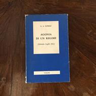 G. A. Fanelli, Agonia di un regime, Giovanni Volpe editore 1971, la copertina mostra una serie di abrasioni lungo le estremità, il dorso presenta segni di usura lungo tutta la superficie, il taglio delle pagine appare intatto e irregolare i lati sono leggermente ingialliti, condizioni buono.ù