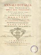 Annali d'Italia dal principio dell'era volgare sino all'anno 1750, compilati da Lodovico Antonio Muratori. Colle prefazioni critiche di Giuseppe Catalani, prete dell'oratorio di S. Girolamo della Carita. Tomo primo [-duodecimo]