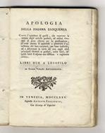 Apologia della pagana eloquenza. Contro l'opinione di quelli che reputano la lettura degli antichi profani ed ottimo oratori di poco rilievo pe la predicazione (...) Libri due a Legofilo di Sabin Vipati antigonista - copertina