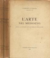 Partizione completa, di opera incompleta, a cura del Touring Club Italiano, nel dettaglio: L'arte del medioevo, in due tomi, vol. VIII: Dalle catacombe alle cattedrali romaniche; vol. IX: Il Duecento e il Trecento. Legatura coeva, copertina in robusto cartonato naturale, usurato l'esterno da abrasioni e usure da scaffale, dissolvenza del dorso, stropicciature e ammaccature da conservazione alle cuffie e margine, fogli velati da ossidazione intensa al bordo e tagli, ricchissimi di documentazione artistica, in totale 190 cartine e schizzi, e 524 fotoincisioni. N. pag. 112; 122, totale 233.
