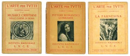 5 voll. Mm. 160x118. Pp. ca [10-15] introduttive seguite da cc. di tavv. in b/n. Cc. lievemente e occasionalmente brunite e macchiate. Cartonato editoriale con titolo e illustrazione al piatto anteriore (mancanze al dorso). Prime edizioni appartenente alla collezione dell'Istituto Nazionale L.U.C.E. 'L'arte per tutti'.