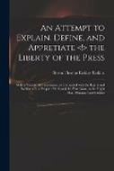 An Attempt to Explain, Define, and Appretiate the Liberty of the Press: With a View to Its Importance, as Connected With the Rights and Welfare of the People: Dedicated, by Permission, to the Right Hon. Thomas Lord Erskine