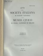 Atti della Società Italiana di Scienze Naturali e del Museo Civico di Storia Naturale di Milano Fasc. I-II/III-IV Anno 1983