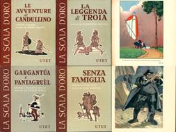 <p>Illustrazioni di <strong>Vsevolode Nicouline</strong></p> 8vo. pp. 110. . Molto buono (Very Good). Pagine brunite ai margini (Pages slightly browned to edges). . . <p><em><strong>Si aggiungono altri 3 libri della collana Scala d'oro per i ragazzi di 10 anni. </strong></em>1) La leggenda di Troia, illustrato da Carlo Parmeggiani; 2) Gargantua e Pantagru&egrave;l, Illustrato da Piero Bernardini; 3) Senza famiglia, illustrato da Gastone Regosai</p>