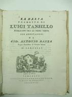 In 8, pp. (2) + 3 + (1b) + 74. Vignetta xil. al fr. e in fine. Cart. coeva. Ed. orig. di questo poema del Tansillo stampato in tre varianti. Questa e' la terza che presenta al fr. una xilo. non firmata. Gorini (Vercelli nei libri... p. 98) cita solo le prime due varianti di questa edizione, una con XXIV pp. iniziali e una con VIII pagine. Questa prima edizione del poemetto didascalico fu pubblicata da Antonio Ranza a due secoli dalla morte (1568) dell'autore, sulla base di un manoscritto rinvenuto in un non meglio specificato codice del XVI secolo.