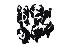 Cartolina di invito alla mostra di Marco Lodola alla Galleria Miralli, Viterbo 1 novembre 1993. Una illustrazione in bianco e nero