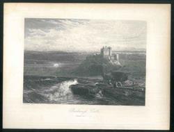 Incisione su acciaio, impronta 27x19 cm, su foglio 31,5 x 23,5 cm. In primo piano, sulle rive di un mare in tempesta, si scorgono figure intente a recuperare i resti di un vascello arenato. In secondo piano, sulla cima di una parete rocciosa si erge il Castello di Bamburgh (Northumberland, Inghilterra). Tratto da "Picturesque Europe" 1875-1879. Esemplare ben conservato.