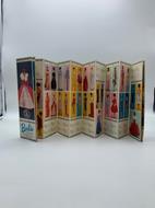 Catalogo in forma di pieghevole costituito da 28 facciate (ciascuna misura cm 7 x 22) con 98 riproduzioni fotografiche a colori di vari modelli di Barbie e compagni (Ricky, Skipper, Ken). Moltissime le Barbie presentate con varie tipologie di abiti per le diverse occasioni, e prezzo. Ad esempio: Pigiama, Pomeriggio, Pesca subacquea, Gioco del croquet, Cenerentola, Andiamo in fiera, Arte moderna, Sinfonia in oro, Mille e una notte, La sposa, Barbie in cucina, Miss Astronauta, Giorno di pioggia, Pattinatrice, La tifosa, Buone vacanze, Giorno di ballo, Buona notte, Una bella canzone, Invito al te', ecc... Presenti anche modelli di Ricky (Doccia, Relax, Domenica pomeriggio), Skipper (Compleanno, Desabille', Pioggia, Terra e mare, Scolaretta, Cappotto verde, Tempo di cucinare, ecc...), Ken (Completo sportivo, Cacciatore, Il principe azzurro, Re Arturo, Studente, Autostop, Soldato, Barista, Giocatore di golf...).
