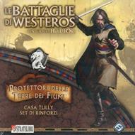 “Se ritorneranno, useremo il loro sangue per irrigare i campi che hanno bruciato.”                                                                       - Marq Piper, Il Trono di Spade Le terre dei fiumi sono messe a ferro e fuoco; queste regioni, un tempo meravigliose e tranquille, sono violate dalla guerra. Gli eserciti della Casa Tully si stanno preparando alla controffensiva. Aiutali reclutando gli agili Cavalieri del Fiume dei Tully e i loro Arcieri Pesanti, assieme ai Guerrieri di Wayfarer's Rest. Protettori delle Terre dei Fiumi introduce Casa Tully come una nuova forza alleata e nuovi comandanti Tully comeEdmure Tully, Brynden “il Pesce Nero” Tully e Marq Piper. L'espansione Protettori delle Terre dei Fiumi introduce una nuova fazione alleata a Battaglie di Westeros; i giocatori possono utilizzarla per arricchire gli eserciti delle Case che già possiedono.  Elenco elementi di gioco: Regolamento e Piani di Battaglia con 3 scenari nuovi, 32 miniature in plastica, 12 portastendardi (con adesivi), 30 carte, 12 elementi di terreno e 16 segnalini.