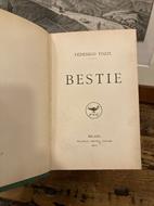 In-16° (16.5x11 cm), pp. (4), 176, tela verde rigida coeva con titoli dorati su tassello al dorso. Più che buon esemplare. Prima edizione. Raccolta di raccontini, frammenti e aforismi tozziani, in ognuno dei quali compare un animale. Cfr. Spaducci, p. 293; Gambetti-Vezzosi, p. 924: non comune e piuttosto ricercato.