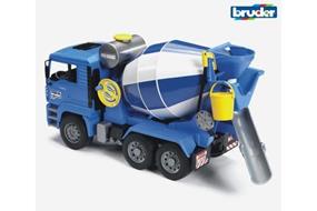 Riproduzione Bruder della Betoniera MAN TGA. La cabina di guida ribaltabile permette una visuale del motore. Il serbatoio dellacqua può essere riempito. Bidone con spirale integrata manovrabile grazie a una manopola e scivolo del cemento ripiegabile. Secchio incluso.