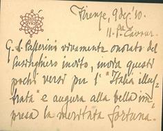 Biglietto da visita con decorazione con la parola Vici all'interno, datato Firenze, 9 dec. '10