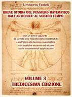 Tredicesima Edizione. Volume 3. Versione del libro in formato ePub. Questo libro traccia una rapida panoramica, ma percorre un lungo cammino dalle prime speculazioni sui numeri naturali e sui triangoli numerici in terra egiziana fino alle più moderne teorie matematiche astratte ed assiomatiche, ma troviamo pure tutta la fisica classica non relativistica e relativistica, la fisica quantistica, la fisica atomica, la fisica ed ingegneria nucleare, ecc., ecc., nonché brevemente riportate le relative storie, oltre ad argomenti di matematica applicata in particolare riguardo i personal computer, l'informatica e l'ingegneria hardware-software, le reti sequenziali, la rete Internet, le comunicazioni elettriche, la telefonia fissa e mobile, la multimedialità, teoria delle reti elettriche, teoria dei sistemi e dei controlli automatici, ecc. E' suddiviso in capitoli e sezioni, ma, per scelta iniziale, non è strutturato in paragrafi, onde sarebbe opportuno usare efficacemente ed efficientemente la casella di ricerca di parole-frasi per entrare nel testo scrivendovi nomi di matematici, fisici, ingegneri, filosofi e pensatori vari, tipi di equazioni algebriche e differenziali, di formule, di funzioni e di tecniche matematiche, nonché nomi di Aziende, società ed organizzazioni note in campo matematico, fisico, ingegneristico, creando anche numerose voci di segnalibro. I lettori lungo il testo vi troveranno molto più di quanto si aspettino. Da Edizione 13, ogni edizione è composta di 4 Volumi da scaricare separatamente. La presente edizione contiene la grande parte del contenuto delle edizioni precedenti con qualche loro integrazione e qualche loro modifica od eliminazione, ed in più aggiunge la sua specifica parte in particolare attinente al tempo più recente, ma sarebbe opportuno scaricare e leggere tutte le edizioni pubblicate di questo libro, in volume singolo fino ad Edizione 12, od in 4 volumi da Edizione 13. Buona lettura.