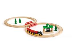 Questo set con 8 figure è un classico set di treni per principianti BRIO per il bambino di 2 anni + con tutti i dettagli in legno.