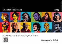 Il “Calendario Letterario - Edizione 2025" nasce dall'unione di testi poetici e Pop Art. Mese dopo mese, si susseguono grafiche in stile Pop di noti scrittori affiancate dalle poesie dell'artista Biancamaria Valeri. Il calendario ha una dimensione di 42x30 cm. rilegato con raffinata spirale nera e stampato su pregiata carta patinata opaca.