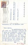 16x10 cm, 10 righe dattiloscritte con firma autografa, in cui il pittore avvisa un'amica della pubblicazione degli atti di un convegno