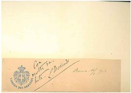 Cartoncino con allegato foglio intestato: "Camera dei Deputati" con firma autografa di Morandi e data: "11/1/1902" - Luigi Morandi - copertina