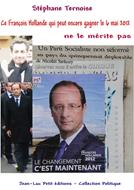 Ce livre de référence est désormais également disponible en papier... La version numérique est vendue à "tarif symbolique", pour l'Histoire. Ce document, les journalistes, naturellement libres, intègres, indépendants et surchargés de sollicitations (dont celles peut-être prioritaires des amis, où peuvent figurer les attachées de presse) ont considéré préférable de le laisser dans l’anonymat avant les élections présidentielles 2012. La Dépêche du Midi de Jean-Michel Baylet (également candidat, souvent jugé sympathique, à la primaire socialiste) ne fut pas le seul organe de presse à l’ignorer. Un livre sans relais médiatique est un livre invisible. Même avec les prétendus "réseaux sociaux" (déjà réduits au rôle d’animation du spectacle, au service des installés). Pourtant, l’Histoire, parfois, sort de l’oubli la première réelle analyse dans un passé contrôlé, même un passé récent. Il est nécessaire que s’amalgament de nombreux hasards, qu’aucun auteur, surtout indépendant, ne peut maîtriser. Ce texte expliquait l’état de la gauche "de gouvernement", donc les dangers, pour cette gauche mais surtout pour le pays, d’une victoire de François Hollande. Ce qui fut occulté en 2012 reviendra comme un boomerang en 2017. En 2012, il ne fallait surtout pas réfléchir mais voter contre le méchant Nicolas Sarkozy. En 2012, le livre, pour des raisons "techniques", n’exista qu’en numérique. En octobre 2013, pour l’Histoire, la version papier. Lisez-le avant 2017 ! http://www.gauche.info Un an plus tard les analyses de Ternoise confirmées par la réalité... *** PRIX SPECIAL : un livre pour l'Histoire : François Hollande est effectivement devenu Président en profitant du rejet de Nicolas Sarkozy et de la chute de DSK *** Maintenant que François Hollande est élu Président, cet essai de Stéphane Ternoise suscite intérêts et réflexions alors qu'au moment des votes il passa quasi inaperçu ! Peut-être logique : les électrices et électeurs voulaient changer de Président... mais désormais ils s'interrogent... Stéphane Ternoise, par son regard indépendant, apporte des réponses... et pointe les points d'extrême vigilance nécessaire... 18 jours avant le premier tour de l'élection présidentielle 2012, Stéphane Ternoise livrait le fruit de ses analyses. .. qui se sont vérifiées ! Même le joker qu'il restait à Nicolas Sarkozy et qu'il n'a pas su utiliser, trop captivé qu'il était par les voix de Marine Le Pen... C'est difficile, en France, d'être de gauche. http://www.gauche.info Présentation lors de sa publication : Si François Hollande gagne, l'espoir de réformer le Parti Socialiste s'effondre pour au moins 20 ans ! Des bébés éléphants sont formés pour entrer dans la carrière avec le même état d'esprit. Certes, déjà, même dans l'hypothèse d'une défaite, les notables installés semblent écarter toute transformation !... Et les élus locaux se satisferont d'ainsi pouvoir continuer à cumuler les mandats ! Oubliées les lucides déclarations d'après la défaite de Ségolène Royal en 2007 : "si le PS perd les prochaines présidentielles, il disparaît." Néanmoins Jean-Luc Mélenchon peut espérer le siphonner et nul n'a vraiment réfléchi à la révolte des militants tellement le parti s'est habitué à leur docilité. Stéphane Ternoise