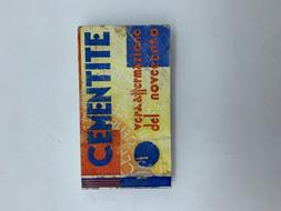 In 32 oblungo (cm 15 x 8), pp. (8) con 68 fogli con campioni di colore. I fogli colorati risultano divisi in due parti, un talloncino superiore e una parte inferiore. Tre talloncini superiori (dei fogli 8, 9 e 23) sono in parte strappati. Brossura editoriale con sagoma fustellata al piatto posteriore raffigurante la parete di un soggiorno che, sovrapposta alle tavole colorate, consente di visualizzare i diversi colori di tinte alle pareti. Catalogo della cementite, pittura opaca per muri, prodotta dalla Ditta di Genova Bolzaneto dei Fratelli Giovanni e Pietro Tassani.