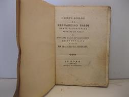 In 8, pp. XII + 100 + VII. Cart. rifatta. Interessante edizione che raccoglie i cento apologhi del Baldi, li rende in poesia e vi acclude una moralita', questo ad opera di Giovanni Mario De' Crescimbeni per la versione poetica e Malatesta Strinati per le moralita'. Opera minore del Baldi, importante umanista nativo di Urbino, autore di opere scientifiche, letterarie, antiquarie, noto per la conoscenza di almeno 12 lingue. Fu Abate di Guastalla per 25 anni. Raccolta di storie di poche righe con finalita' filosofico - morali quali: il coltello e la cote, il finocchio, il ragno ed un geometra, un oriolo da sole ecc. I curatori furono attivi presso la colonia arcadica di Roma, De' Crescimbeni, nativo di Macerata, fu fondatore con il Gravina e custode generale dell'arcadia, lo strinati ebbe nome di Licida Orcomedio.