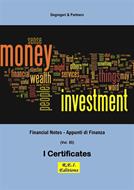 I Certificati d’investimento, o più semplicemente Certificates, sono strumenti d’investimento emessi e garantiti da un Market Maker, negoziabili sul SeDex di Borsa Italiana (mercato dei Securitised Derivatives, ex MCW) o altri mercati regolamentati (ad esempio EUROTLX). Le tipologie di Certificates presenti sul mercato sono quattro: • Certificati a Capitale protetto/garantito. • Certificati a Capitale condizionatamente protetto. • Certificati a Leva. • Cerificati a Capitale non protetto. Tali strumenti finanziari rappresentano una valida alternativa all’acquisto diretto di un’attività sottostante in quanto permettono di realizzare innumerevoli strategie che sarebbero difficilmente implementabili dagli investitori privati, dalle più semplici come la replica del sottostante, ad esempio azioni, indici, materie prime e Forex, a quelle più complesse, con o senza un effetto leva, con una protezione del capitale parziale o totale. • I Certificates a capitale protetto sono strumenti che offrono la possibilità di investire in attività finanziarie garantendo la tutela del capitale investito, se sottoscritti durante la fase di collocamento e detenuti fino al rimborso dello strumento. Se acquistati sul mercato secondario consentono di definire la performance minima ottenibile a scadenza. • Nel caso di certificati a capitale condizionatamente protetto abbiamo prodotti finanziari che consentono l’esposizione a particolari asset offrendo una garanzia parziale del capitale, condizionata al non raggiungimento di determinati livelli barriera stabiliti all’emissione. • I Certificati a Leva sono strumenti finanziari che offrono un’esposizione più che proporzionale a variazioni di prezzo di un determinato sottostante consentendo di beneficiare, a seconda della tipologia di strumenti, di rialzi oppure di ribassi dello stesso. • I Certificati a Capitale non protetto sono prodotti molto semplici che replicano fedelmente la dinamica dei sottostanti. Alcuni prodotti prevedono la partecipazione ai movimenti del sottostante in modo più o meno proporzionale. Si tratta di strumenti definiti anche benchmark, perché replicano esattamente un indice o un’azione riportando fedelmente i guadagni e le perdite del sottostante.