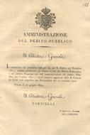Circolare con la quale il Direttore Generale dell'Amministrazione del Debito Pubblico manda pubblicarsi i Conti del Debito Redimibile, e del Debito Perpetuo resi dall'amministrazione del Debito Pubblico per l'anno 1821...26 giugno 1822