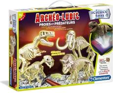 Questa casella scientifica vi permetterà di scoprire i segreti del passato. · Lavori di scavo in blocchi di terra come un vero e proprio paleontologo e ricostruire scheletri fosforescenti di due dinosauri (T-Rex e Triceratops) e 2 animali preistorici (mammut e Smilodon)