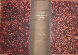 Copertina marmorizzata con banda e angoli, titolo dorato al dorso, sporca ingiallita e usurata. Tagli e pagine sporchi di polvere e bruniti.