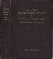 Codice di procedura penale e leggi complementari commentati con la giurisprudenza dal 1° luglio 1931 al 30 maggio 1954, coordinati con richiami e note, corredati di indice analitico generale. Volume redatto con la collaborazione dei dott. Mario Elia e Marcello Severino. Coperta semi-rigida in simil pelle con titoli oro al dorso ed al piatto anteriore mostrante segni di usura ai margini con piccoli strappi alle cuffie e tracce di decolorazione agli angoli ed a ridosso del dorso. Pagine in carta fine, fruibili anche se ingiallite dal tempo, in particolare ai tagli. Da segnalare strappo lungo la cerniera (morso interno) del frontespizio e dell'ultimo foglio; tracce di colla da legatura all'ultimo foglio ed al frontespizio con conseguente incollamento degli stessi al foglio antistante. Legatura salda; segnalibro in stoffa rossa lievemente logorato. Timbro d'appartenenza dell'Avvocato Erasmo Perani alla pagina di guardia. Numero pagine 577.