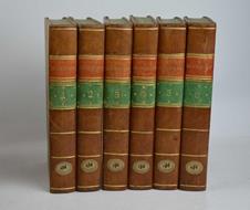 Sei volumi di cm. 20, pp. 3.000 ca. complessive. Con due tabelle ripiegate f.t. al terzo volume. Solida ed elegante legatura strettamente coeva in mezza pelle con punte, dorsi lisci con filetti in oro e titoli su doppi tasselli bicolore. Esemplare fresco ed in ottimo stato di conservazione. Con la firma di possesso di René-Guillaume-Jean Prevost (1749-1816) personalità della vita politica ginevrina e membro del consiglio di Stato. Prima edizione francese.