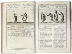 <p>In folio (mm. 377x254). Pp. XXIV, 324. Frontespizio stampato in rosso e nero con al centro le armi del duca di Sassonia e re di Polonia Augusto III disegnate da Filippo Barigioni e incise in rame da Paolo Posi, capilettera figurati in legno, 2 capilettera figurati incisi in rame, 74 grandi finalini incisi in rame da Francesco Faraone Aquila su disegno di Pier Leone Ghezzi e Domenico Muratori, e 156 magnifiche illustrazioni calcografiche nel testo, di cui 6 a piena pagina, alcune sottoscritte da Giovanni Battista Sintes e da Domenico Miserotti. Testo inquadrato da duplice filetto e stampato su due colonne con l'originale latino affiancato dalla traduzione italiana. Mezza pergamena coeva con punte, carta decorata ai piatti, titolo manoscritto al dorso, tagli rossi (minime spellature). A tratti leggermente brunito, minime fioriture sparse, ottima copia.</p> <p>Sontuosa edizione delle Commedie di Terenzio con il volgarizzamento di Niccol&ograve; Forteguerri e le affascinanti figure tratte dal ms. Vaticano 3868 del IX secolo.</p> <p>Catalogo unico, IT\ICCU\RMLE\010802; Gamba, 2470 (&ldquo;Magnifica edizione&rdquo;); Graesse, VII, 61 (&ldquo;ces figures des masques tir&eacute;es d'un man. ancien du Vatican son plus fid&egrave;les que celles copi&eacute;e dans l'ed. de Dacier [&hellip;] le texte est celui de Heinse, la traduction italienne appartient a Nic. Fortiguerra&rdquo;); Brunet V, 723 (&ldquo;belle edition publi&eacute;e aux frais du cardinal Albani&rdquo;).</p>