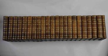Quarantatre parti legate in 22 volumi di cm. 13, pp. 11.000 ca. complessive. Con 43 graziose incisioni, poste all'antiporta di ciascuna parte. Solida ed elegante legatura coeva in mezza pelle, dorsi lisci con titoli e filetti in oro. Qualche minina fioritura a poche carte, peraltro esemplare assai genuino e ben conservato. Si tratta dell'edizione originale della traduzione italiana eseguita sulla stampa parigina di alcuni anni prima (1822). Veramente non comune a reperirsi completa in tutte le sue parti come il presente esemplare. Dall'occhietto: "Compendio dei viaggi moderni dal 1780 fino ai nostri giorni che contiene ciò che vi ha di più notabile, di più utile e di meglio avverato nei paesi dove penetrarono i viaggiatori più rinomati; i costumi degli abitanti, la religione, le usanze, arti e scienze, il commercio, le manifatture, ec.".