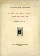 Milano, Ulrico Hoepli (U. Allegretti di Campi), In-4°, pp. 68, (2), brossura editoriale. 6 tavv. in b.n. f.t. Ottima copia intonsa. Pubblicazione celebrativa del monumento a Goethe scolpito da Walter Flemming ed inaugurato all'Ambrosiana l'8 giugno 1937. Contiene scritti del Windels (Goethe e l'Italia), del Galbiati e del Gorla e stralci dagli articoli della stampa sulla solenne inaugurazione.