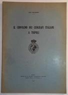 Il convegno dei geografi italiani a Tripoli. Estratto del Bollettino della R. Società Geografica Italiana, Serie VII, Vol. II, N.1, Gennaio 1937. All'interno alcune illustrazioni fotografiche. Brossura editoriale scolorita ai bordi, interno pulito e ben tenuto.