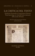 La critica del testo. Problemi di metodo ed esperienze di lavoro. Trent'anni dopo in vista del settecentenario della morte di Dante. Atti del convegno internazionale (Roma, 23-26 ottobre 2017) - copertina