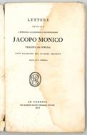 In 8vo (mm. 223x135). Pp. 95, [1 bianca]. Prima carta bianca. Brossura colorata coeva (manca il piatto posteriore e parte del dorso). Alone lungo tutto il volume. Contiene Lettere di un anonimo ad un catecumeno e risposte del catecumeno all'anonimo N.N. Catalogo unico, IT\ICCU\VEAE\131697.