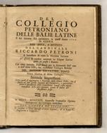 Del Collegio Petroniano delle balie latine e del solenne suo aprimento in quest'anno 1719. In Siena per dote, e istituto del cardinale Riccardo Petroni a benefizio di tutta la nazione italiana (...) del dottor Salvatore Tonci (...) Seconda impression
