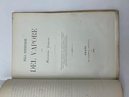 In 8 (cm 15,5 x 23,5), pp. 36 con 1 tavola finale piu' volte ripiegata con figure incise in litografia. Brossura rifatta con carta d'epoca. Dissertazione presentata da Attilio Cerutti alla Commissione esaminatrice della Scuola d'applicazione degli Ingegneri di Torino, per ottenere il diploma di laurea di ingegnere meccanico, sulla distribuzione del vapore nelle macchine mediante il sistema Corliss.