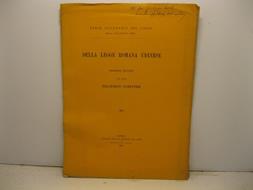 In 4, pp. 86. Intonso. Dedica autogr. dell'A. al p ant. Fioriture della carta. Lievi mancanze al d. Br. ed. Dall'incipit: 'Sono gia' trascorsi alcuni anni dacche' abbiamo risollevata la questione circa la eta' e la patria della legge romana udinese, che pareva chiusa: anzi la discussione si e' fatta sempre piu' viva... [...] Cio' che oggimai sembra assodato e' che la compilazione della legge appartenga al IX secolo ma quanto alla patria si disputa tuttavia. Il Wagner e' tornato all'antica idea [...] che la legge fosse compilata per l'Istria [...]. Il Brunner [...] aderisce ancora all'opinione che sia piuttosto una legge delle Rezia Curiense che non una legge italiana...'