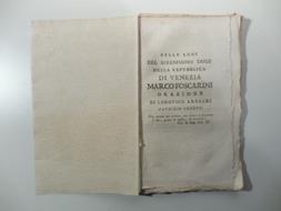 In 16, pp. 74. Br. rifatta con carta d'epoca. Estratto dalla Nuova Raccolta d'Opuscoli scientifici e filologici di Calogera' (tomo XVIII). Marco Foscarini (1696-1763) fu il centodiciassettesimo Doge della Repubblica di Venezia. Figlio di Nicolo' ed Eleonora Loredan, in gioventu', dopo aver studiato a Bologna, torno' a Venezia dedicandosi ad alcune passioni, tra le quali la letteratura. In seguito si avvio' alla carriera politica. Fu eletto doge nel 1762.