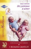 Des jumeaux à aimer, Teresa Carpenter Lorsqu'elle apprend, après le décès tragique de sa sœur, qu'elle a été nommée tutrice de ses jumeaux de dix mois, Rachel Adams sent la panique la gagner. Elle ne connaît rien aux enfants ! Pourtant, quand Ford Sullivan, l'autre tuteur des jumeaux, se présente chez elle et la somme de lui confier la garde de Cody et Emily, Rachel comprend qu'elle aime déjà ces bébés. Et que, si séduisant et si sûr de lui que soit Ford, elle ne se laissera pas impressionner... + 1 ROMAN REEDITE OFFERT : Idylle aux Bahamas, Shannon Waverly Un voyage aux Bahamas ? Pour Kayla cela n'a absolument rien d'idyllique, car elle doit s'y rendre en compagnie du seul homme qu'elle s'est juré de ne plus jamais fréquenter...