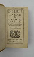 Cm. 12,5, pp. (12) 289 (3). Fregio al frontespizio. Solida legatura coeva in piena pergamena rigida con nervi passanti. Un foro all'ultima crta di testo con perdita di quyalche lettera, peraltro esemplare genuino ed in ottimo stato di conservazione. Cfr. Piantanida (3453): "... La prima Diceria, intitolata 'La Pittura sopra la Santa Sindone"... la seconda Diceria intitolata "La Musica sopra le sette parole dette da Christo in Croce"... La terza Diceria, intitolata "Il Cielo sopra la religione de' santi Mauriztio et Lazaro"...".