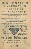 Dictionarium ciceronianum Francisci Priscianensis, in quo omnia vocabula ciceroniana leguntur, atque Italice explicantur... Nuperrimè per Rev. Presb. Sylvestrum Ferrarium Tiranensem multis mendis purgatum