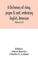 A dictionary of slang, jargon & cant, embracing English, American, and Anglo-Indian slang, pidgin English, tinkers' jargon and other irregular phraseology (Volume I) A-K - Charles G Leland - cover