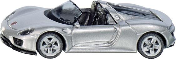 Siku 1475. Colore del prodotto: Argento, Tipo: Auto, Materiali: Metallo, Plastica. Larghezza: 35 mm, Lunghezza: 9,7 cm, Altezza: 78 mm. Quantità per pacco: 1 pezzo(i) De Siku Porsche 918 Spyder is een sportieve sportwagen in een stijlvolle zilveren kleur.