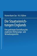 Die Staatseinrichtungen Englands: Eine gedrängte Darstellung des englischen Verfassungs- und Verwaltungsrechts - Homersham Cox,H.A. Kühne - cover