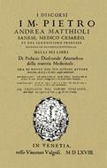 I discorsi di M. Pietro Andrea Matthioli. Sanese, medico cesareo nelli sei libri di Pedacio Dioscoride Anazarbeo della materia Medicinale in Venetia, appresso Vincenzo Valgrisi MDLXVIII (rist. anastatica)